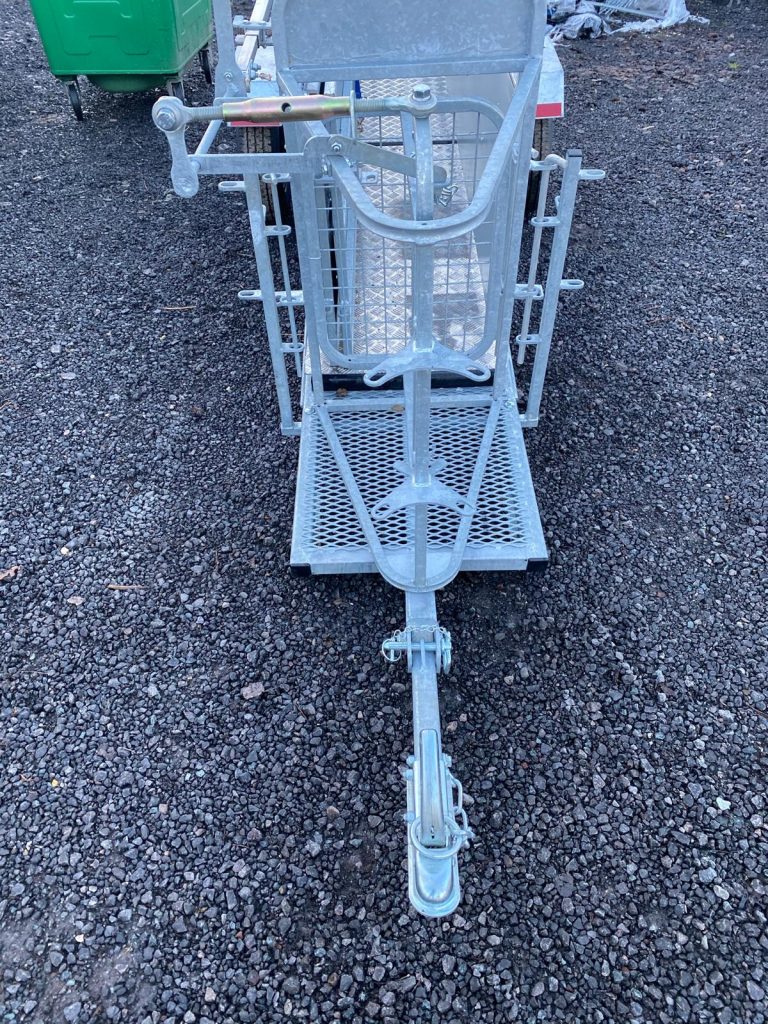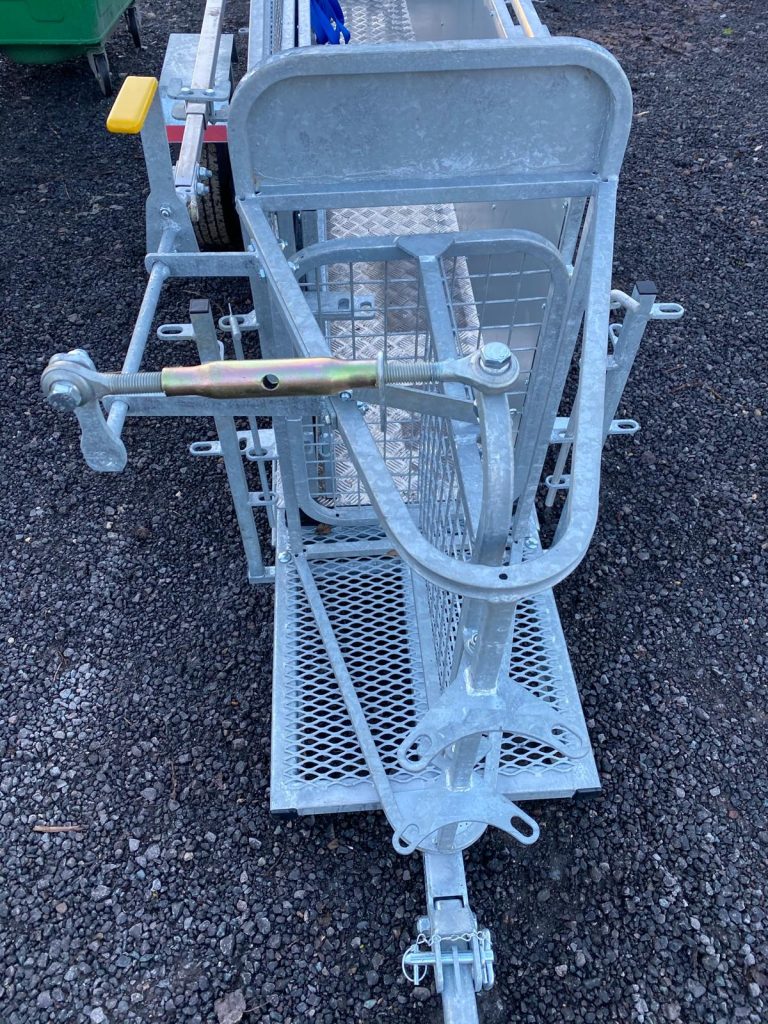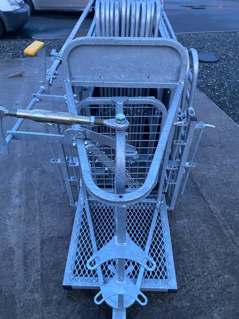 The wheels and hitch can be removed in seconds so as not to obstruct an operator alongside the race. This race can be set up in different ways for different jobs. Another unique feature of our race is that it has adjustable sides to accommodate different size sheep. “The sheep yards” was shown on the Country file programme, “Ear to the Ground.”